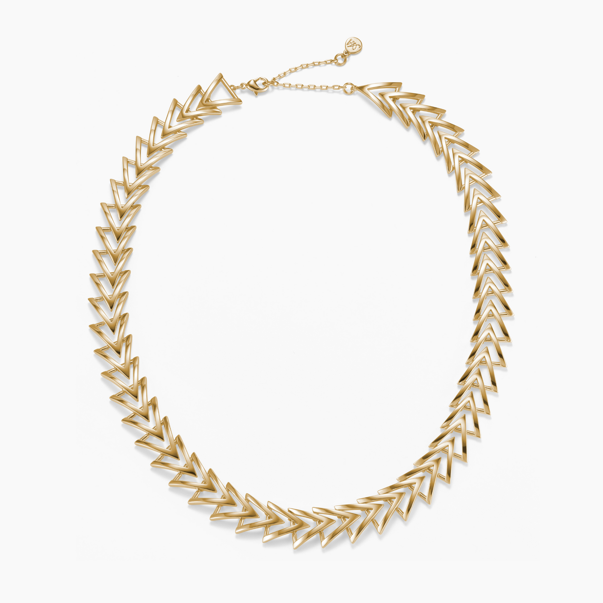The A Chain Necklace makes a distinct statement with repeating inverted A-shaped links, creating fluid movement and catching light from every angle. Finished with an adjustable chain and signature logo charm, it’s designed to command attention, on its own or with the matching A Chain Bracelet.